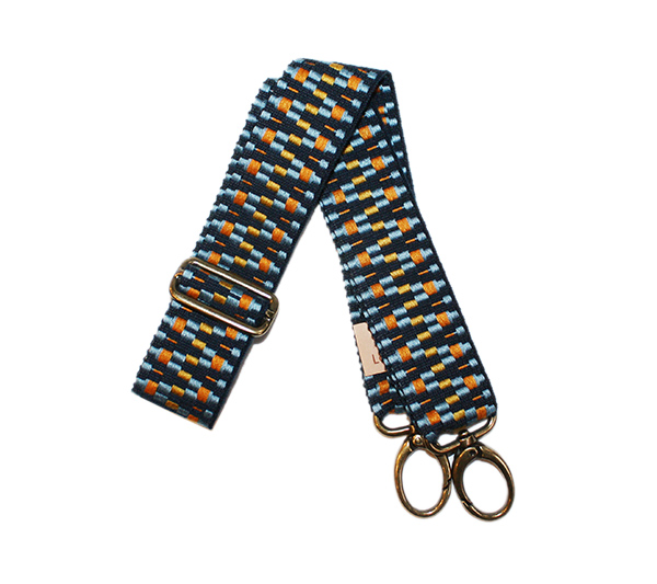 Cinta de bolso regulable modelo soldados en tonos marino y mostaza.